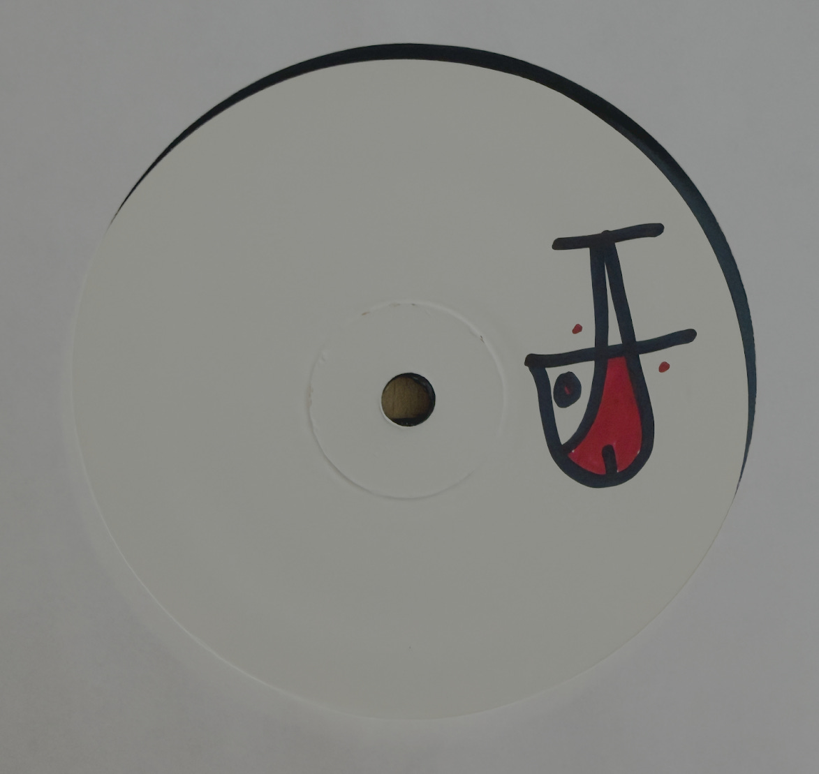 Denlekke messaged Sherman and was able to get a picture of the label of the record. The strange image Denlekke received was some kind of glyph, hand-drawn with black and red Sharpie pens. There was no other identifying text.