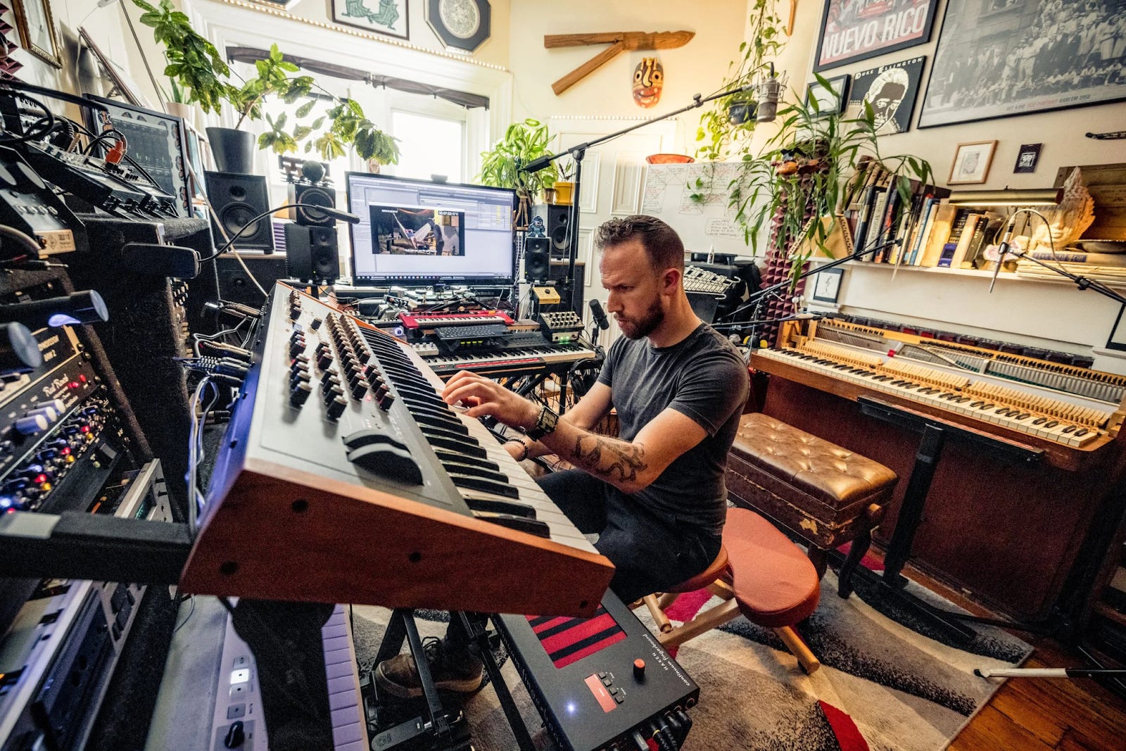 As an example of his recording technique, Madoff shared that the drum sounds came from a djembe he layered with gaffer tape, played and recorded himself, then pitched and EQâd until the sound took just the right shape.