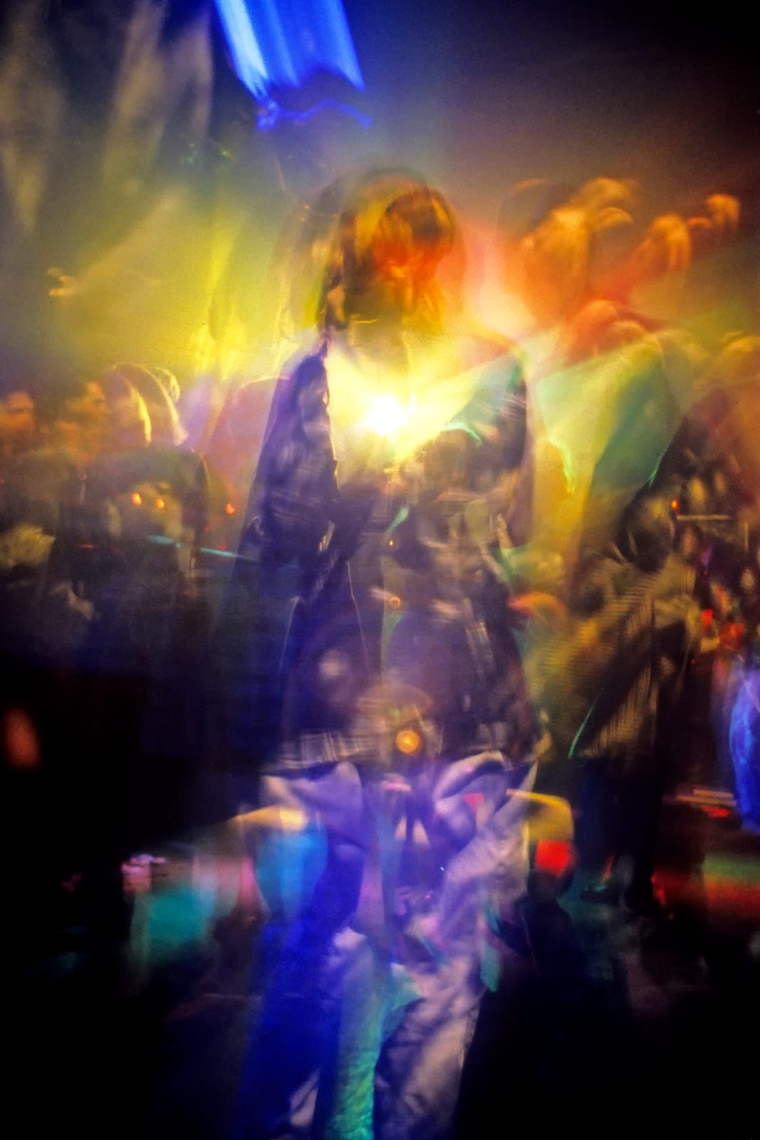 MT: It’s pretty much impossible to encapsulate all of the various aspects of the rave scene into one image, which is one of the reasons why I put DANCEFLOOR THUNDERSTORM together in the first place. There were just too many ravers, too many artists, too many gigs, and too many amazing moments to reduce it all to one frame. However, if there’s any image that personifies the transcendental moments that people experienced in the rave scene, the moments that elevated their own consciousness beyond the confines of everyday existence, I would pick the abstract shot I entitled “Metamorphosis” on page 128.