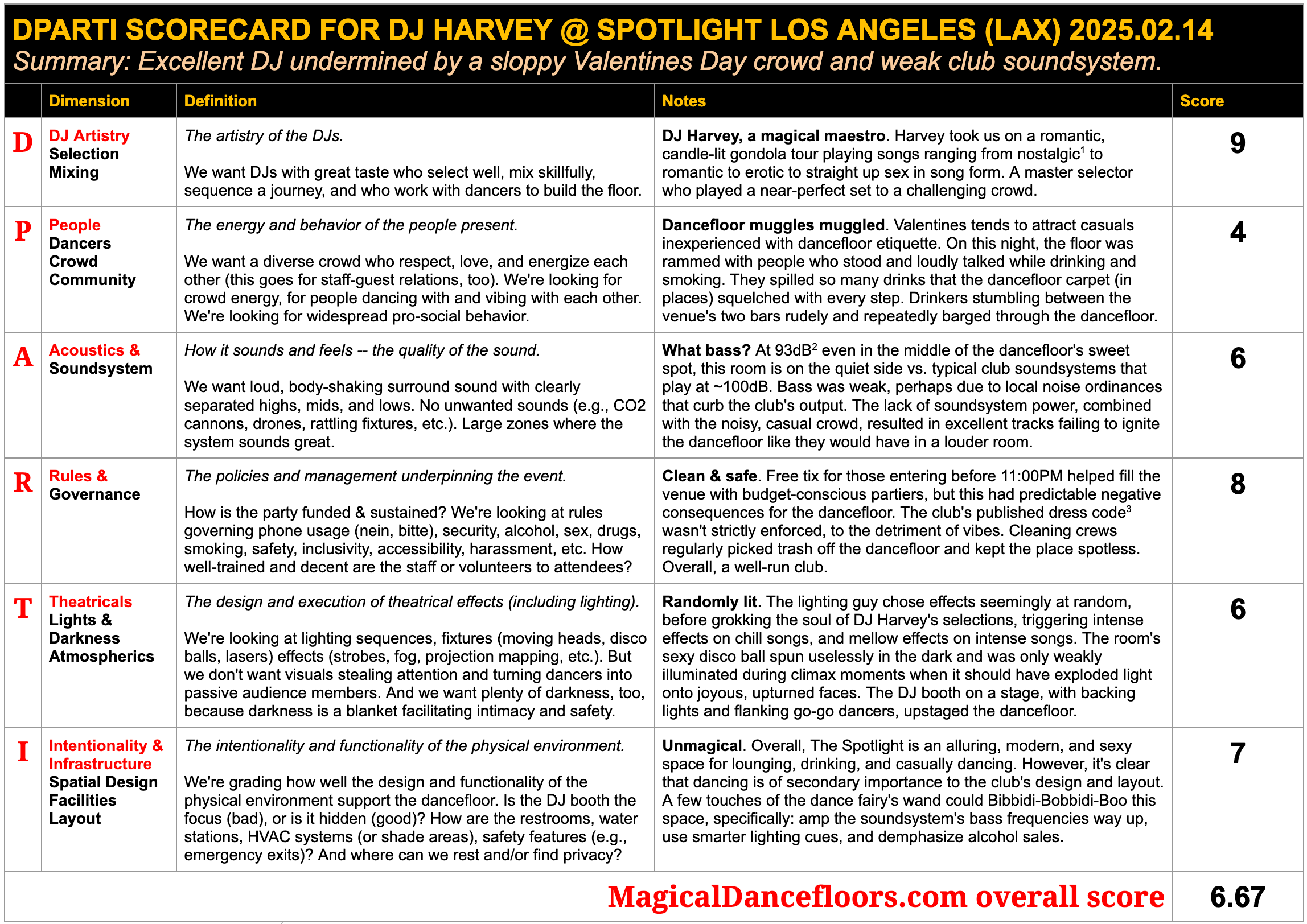 I love the score card at the end! I haven't seen DJ Harvey live yet, but he's definitely on my list!